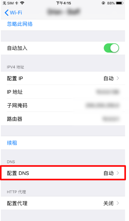 4、在该Wi-Fi网络详情部分向下滚动,找到【DNS】选项部分。