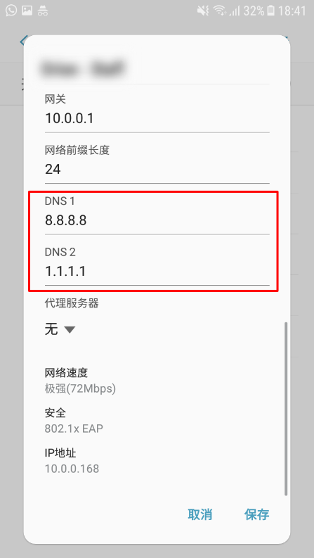 您必须链接WIFI网络,才能更改设备的DNS设置。